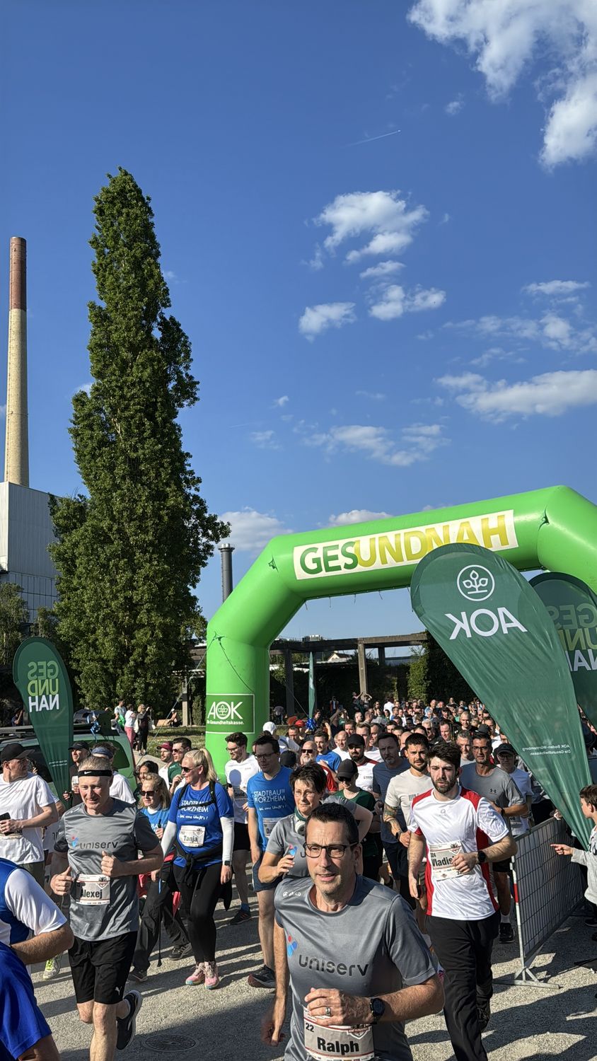 Erneuter Teilnehmerrekord bei strahlendem Sonnenschein. Der 10. AOK Firmenlauf Pforzheim feiert sein Jubiläum mit sagenhaften 1.032 Läuferinnen und Läufern aus 57 Firmen.
